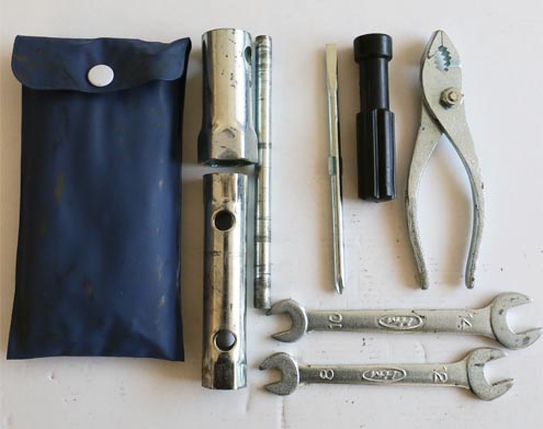 8と9は組み合わせて+-ドライバーとなる。15は、リアアクスルスリーブナット用。その他スパナは、車軸の緩みなどの応急的対処に使う。