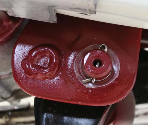 ピポットシャフトは回転するため、割ピンも回転し、本体フレームの塗装面を削ってしまう。