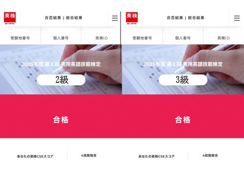 合格したとの知らせがあった。兄は英検2級で妹は3級合格。